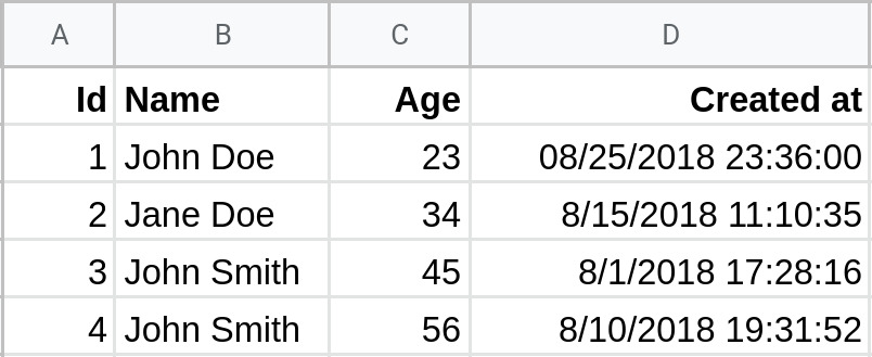 | /api/sheets/<id>/Name/John | GET | Retrieve the rows that have "John" inside "Name" column | ||